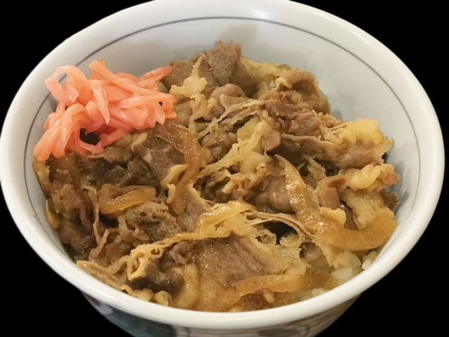 What it is: Thinly sliced beef and onions simmered in sweet soy sauce, served over rice.