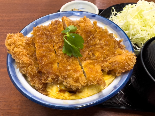 What it is: A crispy pork cutlet simmered with egg and onions in a sweet soy-based sauce, served over rice.