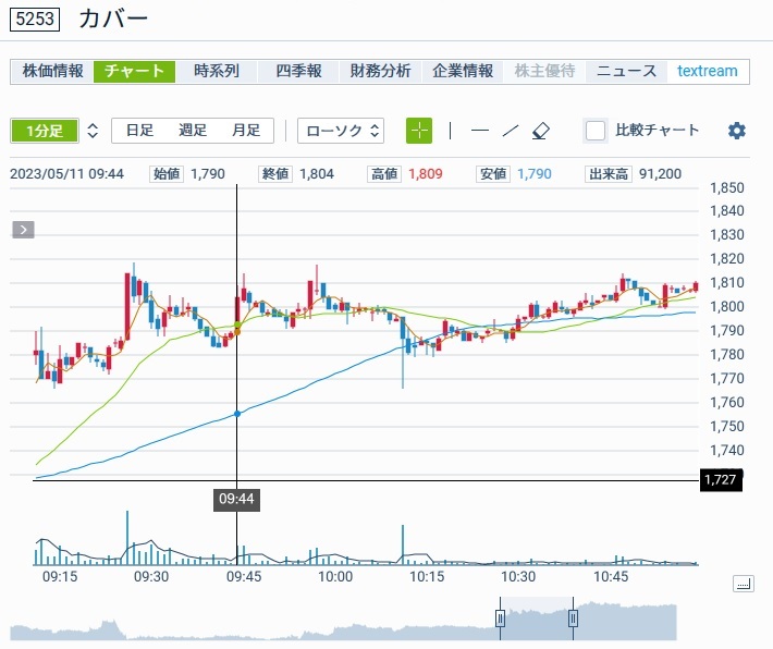 2銘柄目は、カバー(5253)です。