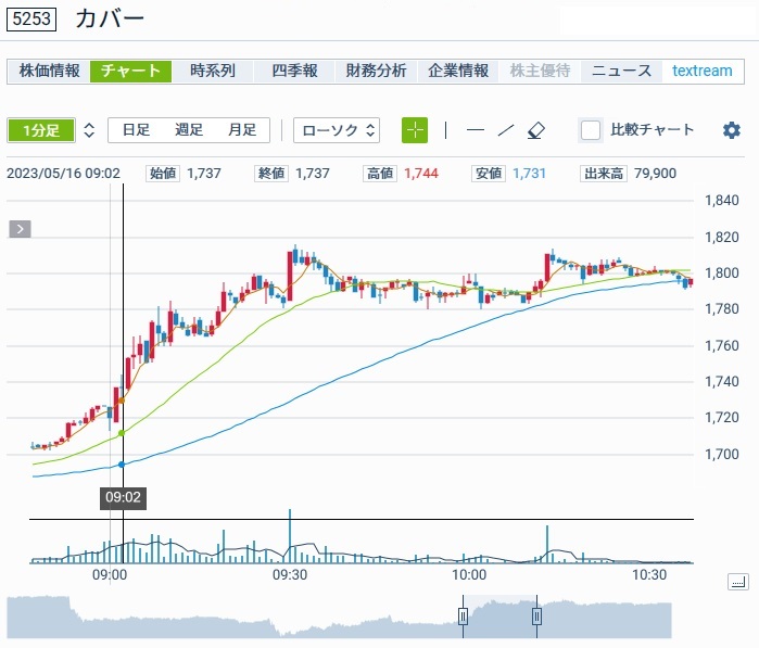 この日、美人OLさんが最初に売買したのは、カバー(5253)です。